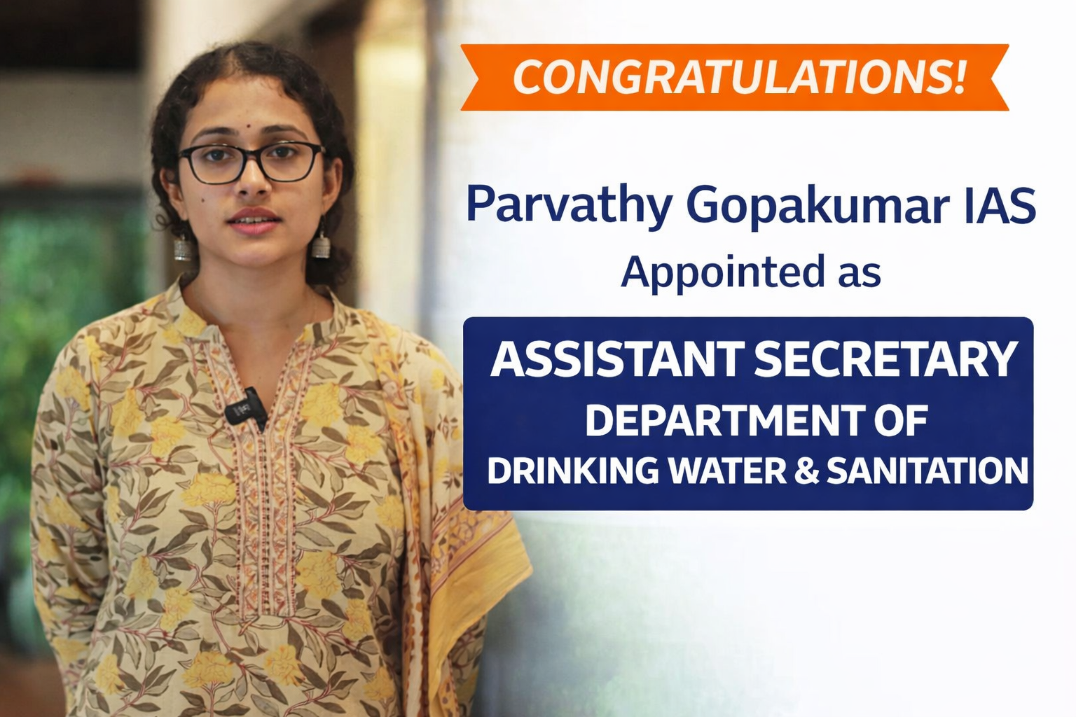 The appointment of Parvathy Gopakumar IAS as Assistant Secretary in the Department of Drinking Water & Sanitation highlights the government’s focus on grooming young officers for leadership roles. With this experience, she is expected to build strong administrative and policy expertise for future responsibilities.