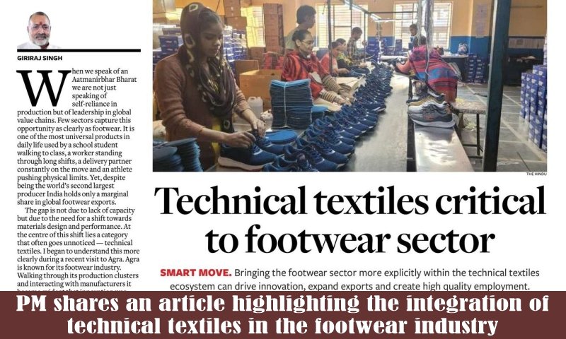 Technical textiles in footwear industry received major attention as the Prime Minister shared an article highlighting the growing integration of advanced textile technologies in footwear manufacturing. The article emphasized how innovation in technical textiles is transforming the footwear sector by improving durability, comfort, performance, and sustainability.
